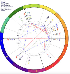 Sul ritorno di Plutone nel tema natale degli USA si sta discutendo da mesi perché é un evento astrologico importante dal punto di vista dei cicli astrologici. Il 20 febbraio 2022 sarà il giorno nel quale Plutone in transito toccherà perfettamente Plutone per come è nel tema natale degli USA ovvero a 27 gradi e 33 del segno del Capricorno. Il tema natale degli USA risale al 4 luglio 1776 con la dichiarazione di indipendenza. Esattamente come adesso, Plutone stava percorrendo gli ultimi gradi del Capricorno per entrare in Acquario e proprio le caratteristiche di Plutone in Acquario sono state fondamentali per la storia del Paese. Ma di questo parleremo tra qualche giorno in un altro post.